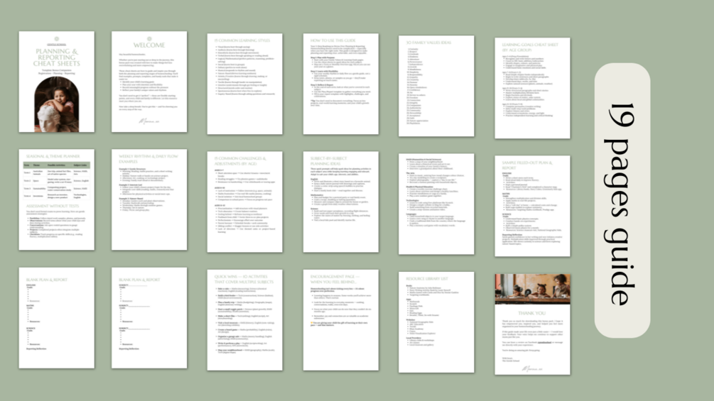 Inside the bundle, you’ll receive: The Beginner’s Guide to Homeschooling, Homeschool Planning & Reporting Template Pack, Planning & Reporting Cheat Sheets